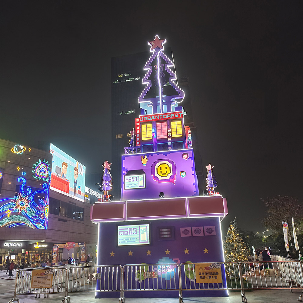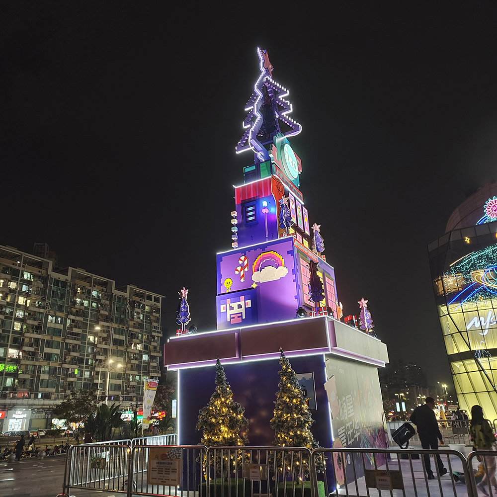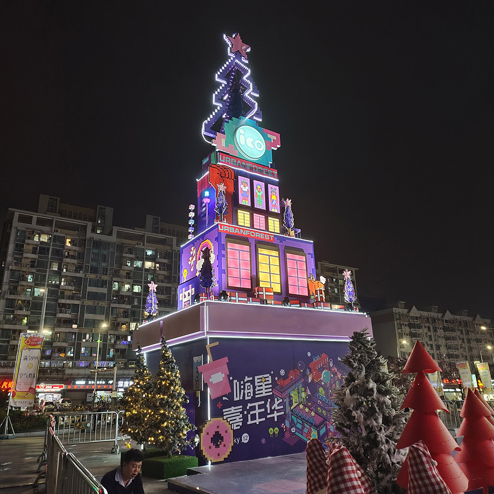 This stylish box Christmas tree can be customized with different patterns, which is suitable for outdoor commercial centers or squares with a lot of people.